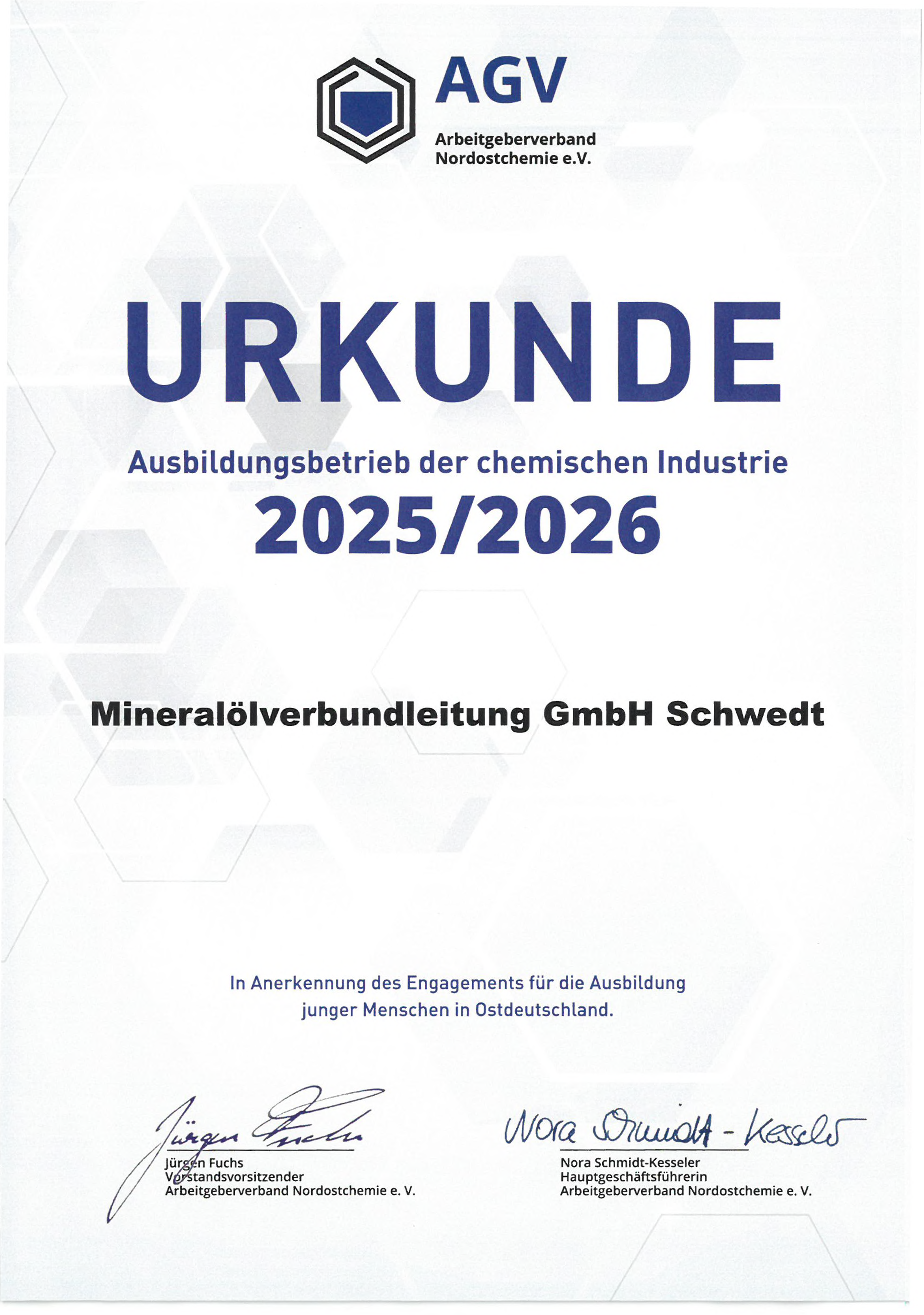 Vom Arbeitgeberverband Nordostchemie ausgezeichnet